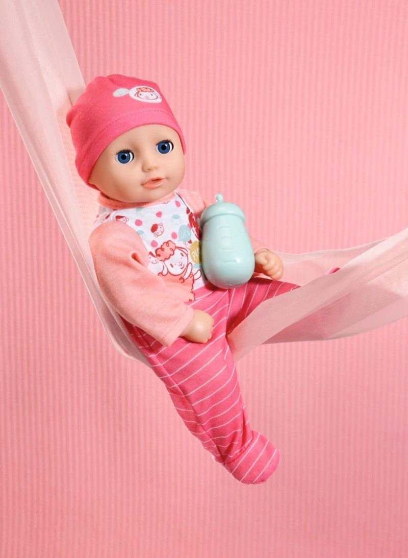 Wenn man My First Annabell auf den Rücken legt, schließt sie ihre blauen Schlafaugen. Baby Annabell Markenspielpuppe Die kleine „Einsteigerversion (30 cm) mit weichem Puppenkörper. Mit Schlafaugen. Im easy fit Style. Animiert Kinder ab einem Jahr behutsam zum (Rollen-)Spiel und setzt erste Anreize zur Entwicklung von Einfühlungsvermögen und Verantwortungsbewusstsein. Baby Annabell My First Annabell 30cm mit Strampler und Mütze.