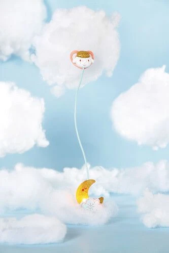 ‚Das Schaf im Mond hilft beim Einschlafen und sorgt für süße Träume. Kaum bekommt Baby Annabell den Schnuller in den Mund, spielt dieser ein Schlaflied und das Schäfchen singt sein Mäh“-Lied. Der goldige Mond beleuchtet den Weg ins Traumland.