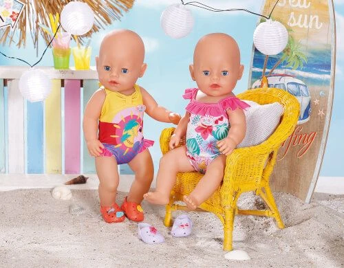 Badespaß beim Babyschwimmen mit BABY borns Badeanzügen in farbenfrohem Holiday Design. Ab 3 Jahren.
