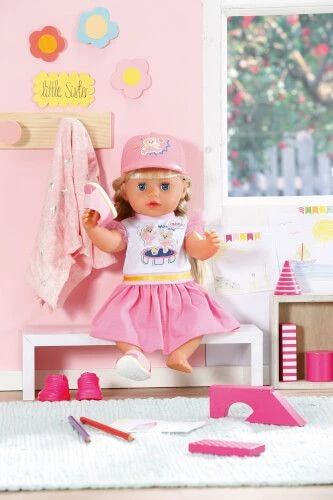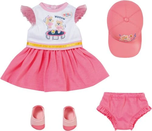 Auch im Kindergarten wird Sport gemacht, mit diesem hübschen Outfit sind die BABY born Little Puppen perfekt dafür ausgestattet. Das Set beinhaltet Kleid mit Aufdruck, Unterhose, Sneaker und eine coole Cap.
