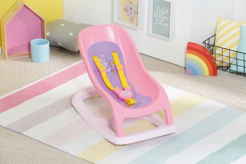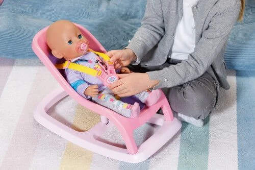 BABY born sitzt gerne in ihrer Wippe und beobachtet gespannt, was um sie herum so passiert. Wenn du die Wippe kurz anstupst, beginnt sie zu schwingen und beruhigt BABY born, wenn sie mal schlechte Laune hat. Das Gurtsystem hält die kleine Entdeckerin sicher auf der weichen Stoffeinlage, damit sie beim Schaukeln nicht herausfällt. Diese Wippe ist eine sichere Kurzpark-Option für deine BABY born. # Hochwertiges Zubehör für die BABY born Markenspielpuppe. Für erweitertes, abwechslungsreiches und langanhaltendes Spielvergnügen. Auch für kleinere Puppen geeignet. BABY born Wippe.