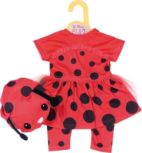 Mit Dolly Moda ist jede Puppe glücklich. Dank des lässigen Schnitts können BABY born, Baby Annabell und andere Puppen in einer Größe von 39- 46 cm fröhlich die Kleidung hin und her tauschen. Das süße Glücksbringer-Kleidchen und die Hose sind mit den typischen schwarzen Marienkäfer-Punkten verziert. Am Oberteil befinden sich Tüllstreifen wie kleine Flügelchen. Und beim Anblick der Mütze mit Käfer-Gesicht und Fühlern bekommt man automatisch einen glücklichen Gesichtsausdruck. Original Zapf Creation Kleidung für die Markenspielpuppen BABY born, Baby Annabell und andere Puppen in einer Größe von 39-46 cm. Für Puppen in einer Größe von 39-46 cm. Erweitert die Spielmöglichkeiten, regt die Fantasie an und fördert kreatives Rollenspiel. Dolly Moda Süßes Marienkäfer Outfit 43cm aus Kleid, Hose und Mütze.
