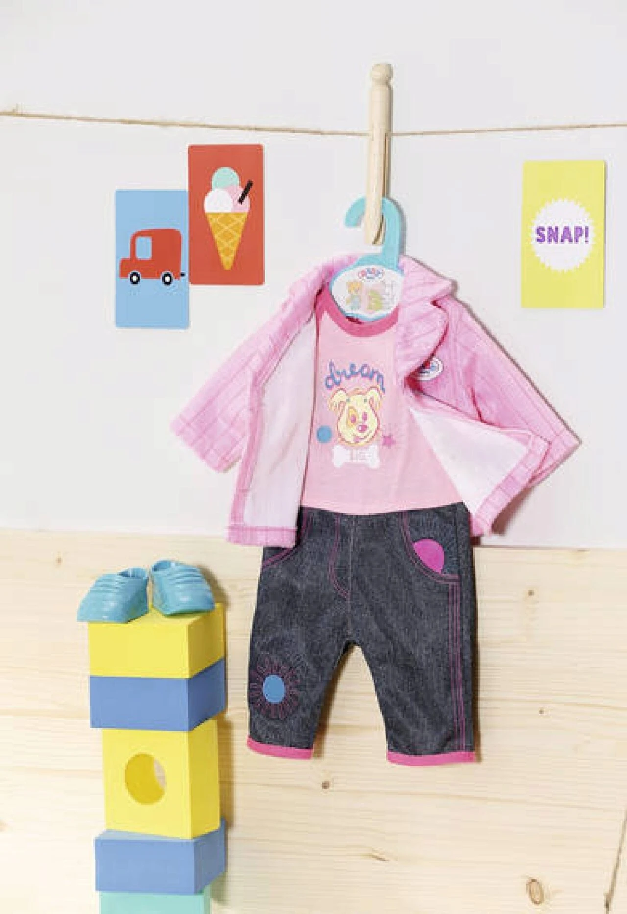 BABY born Kleines Kita Outfit 36cm aus Einteiler, Jacke und Schuhen. Inklusive farblich passendem Kleiderbügel.